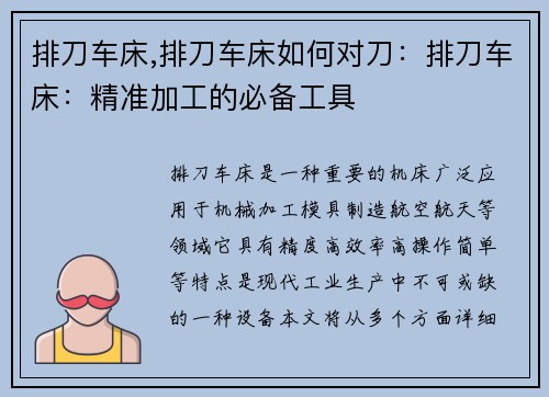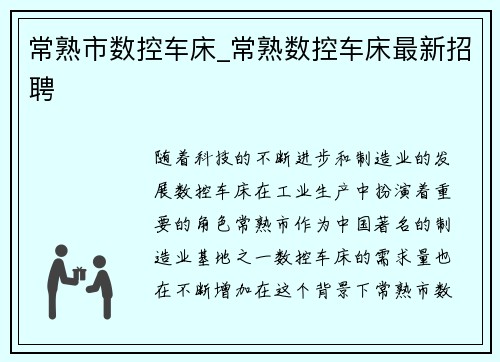 慈溪百汇自动车床电话——打造智能制造新时代 慈溪百汇自动车床电话是一家致力于智能制造的企业,通过引进先进的技术和设备,为客户提供高质量的自动车床产品和优质的售后服务。下面将从多个方面详细阐述慈溪百汇自...